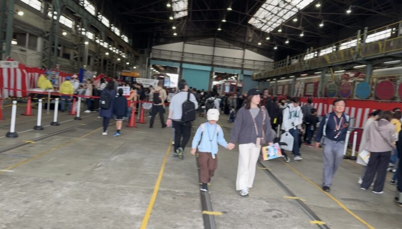 中でも『車庫内の体験・イベントスペース』『車両の展示スペース』の2か所は混雑が激しいです。